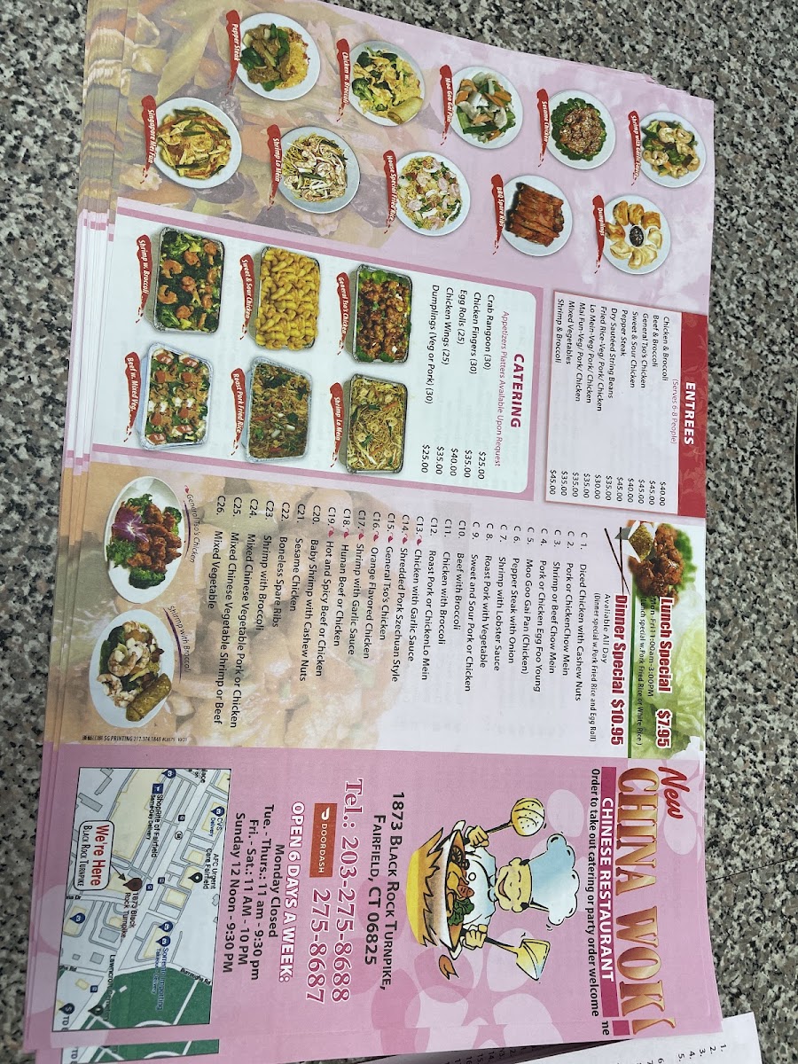 Overall, the menu at New China Wok offers a broad and satisfying selection that caters to a variety of tastes, from classic comfort dishes to more flavorful specialties. The lunch options like Diced Chicken W. Cashew Nuts and Orange Flavored Chicken provide convenient midday choices, while staples such as Shrimp Lo Mein, Beef Lo Mein, and Vegetable Lo Mein highlight the restaurant’s versatility in noodle dishes. The entrée section features familiar favorites like Sweet & Sour Chicken and Beef & Broccoli, complemented by healthier picks such as Mixed Vegetable With Chicken and Tofu With Mixed Vegetable. Appetizers including Shrimp Egg Roll (1), Bar-B-Q Spare Ribs, and Crab Rangoons (8) set a strong start, and hearty soups like Wonton Egg Drop Soup and House Special Soup round out the experience. For those seeking variety, chef’s specialties like Seafood Combination and Happy Family stand out, while classic rice and noodle dishes such as House Special Fried Rice and Singapore Mei Fun ensure there’s something for everyone. Even without clearly listed prices, the menu feels extensive and well-balanced, making it a reliable choice for both quick meals and more indulgent dining.